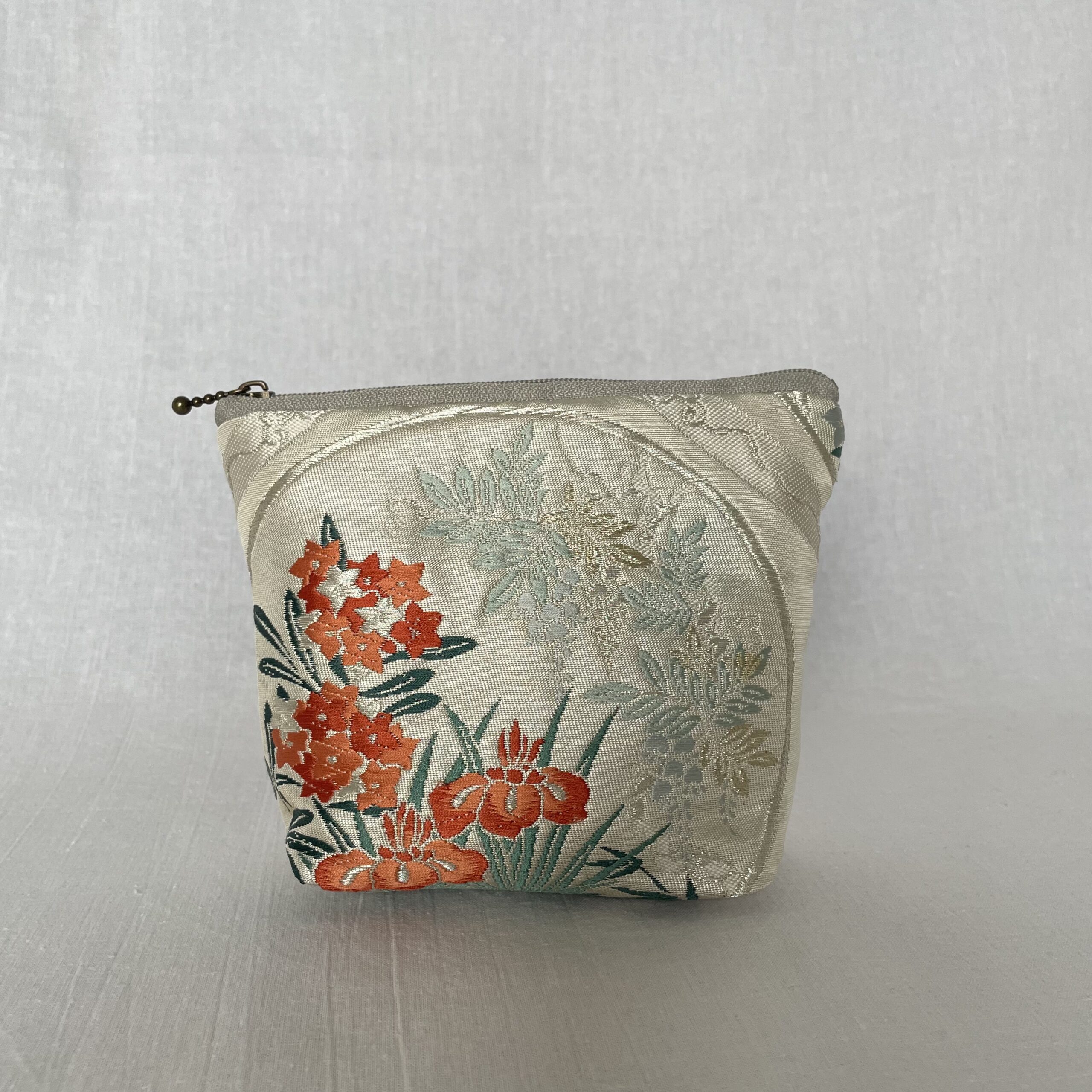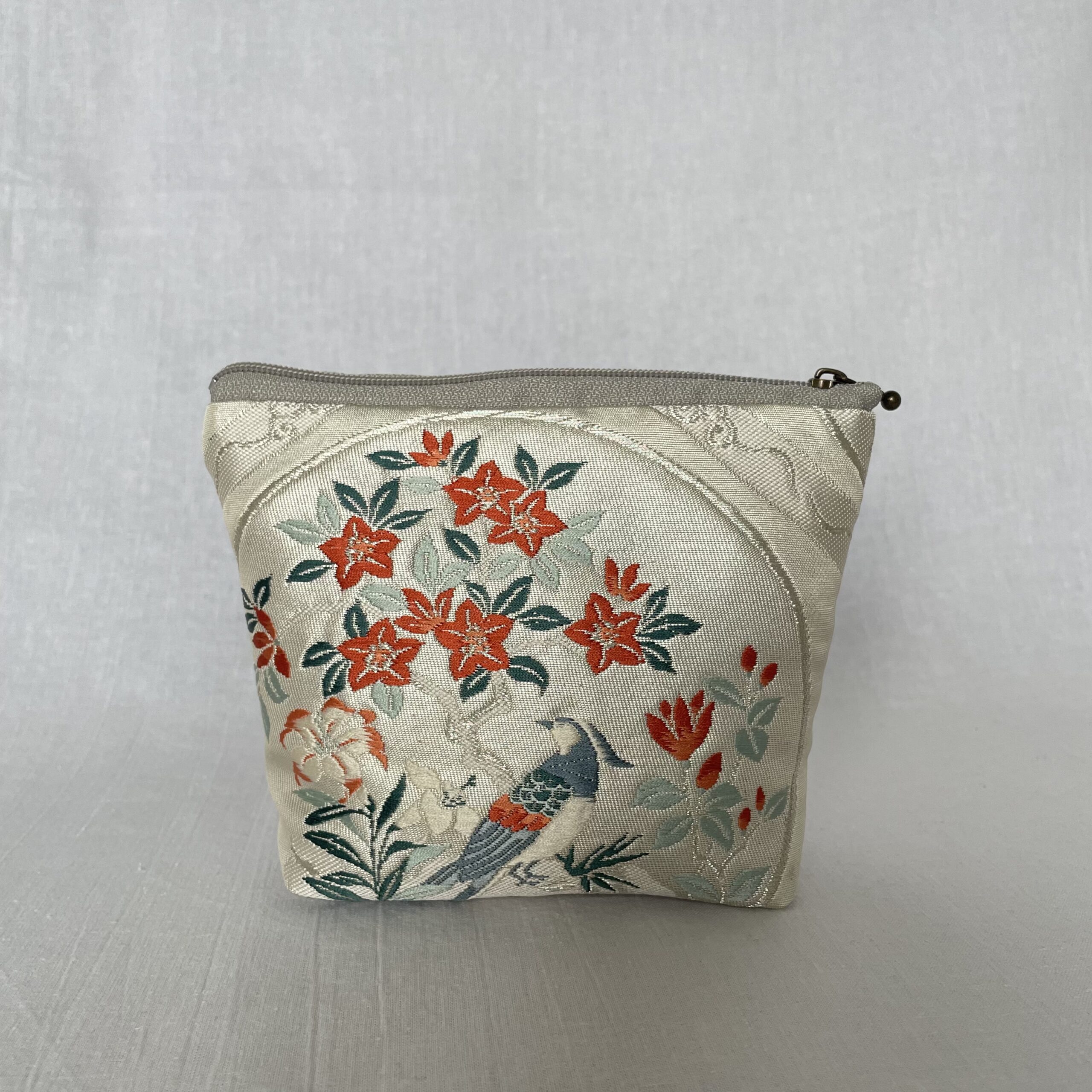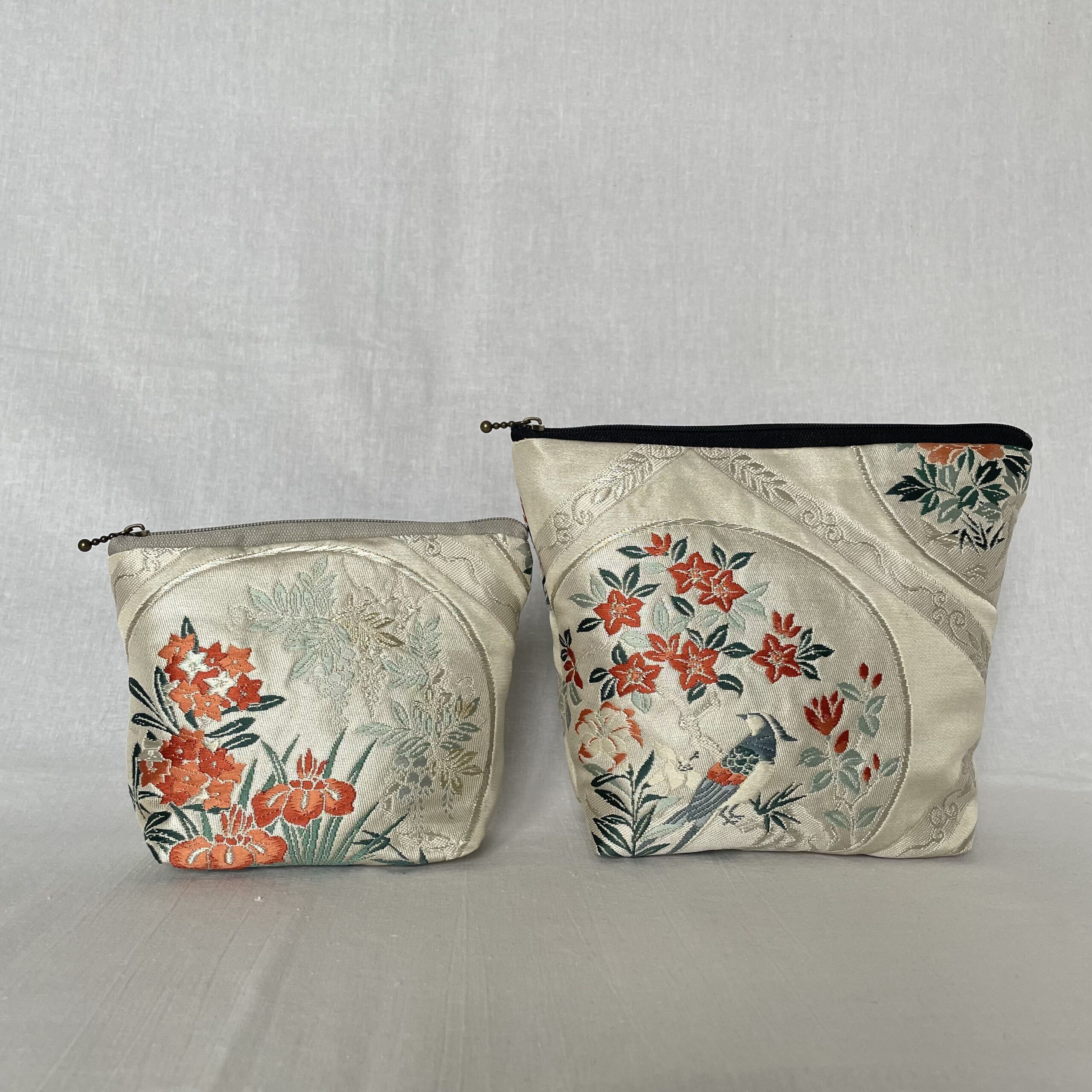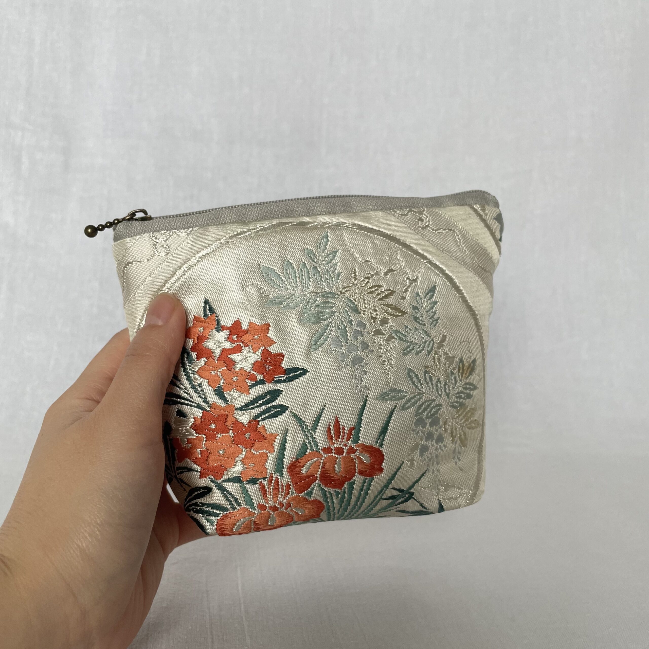 This is a one-of-a-kind item made from vintage kimono ( or obi ) fabric. Enjoy the unique variations in color and shine that change depending on the angle of light. Please handle with care, as areas with embroidery, gold thread, and silver thread may be delicate and prone to wear. Depending on the fabric, there may be slight looseness in the threads or minor stains. To preserve the fabric’s texture and color for as long as possible, avoid direct sunlight. The fabric is not water-resistant, so please be careful when using it on rainy days.