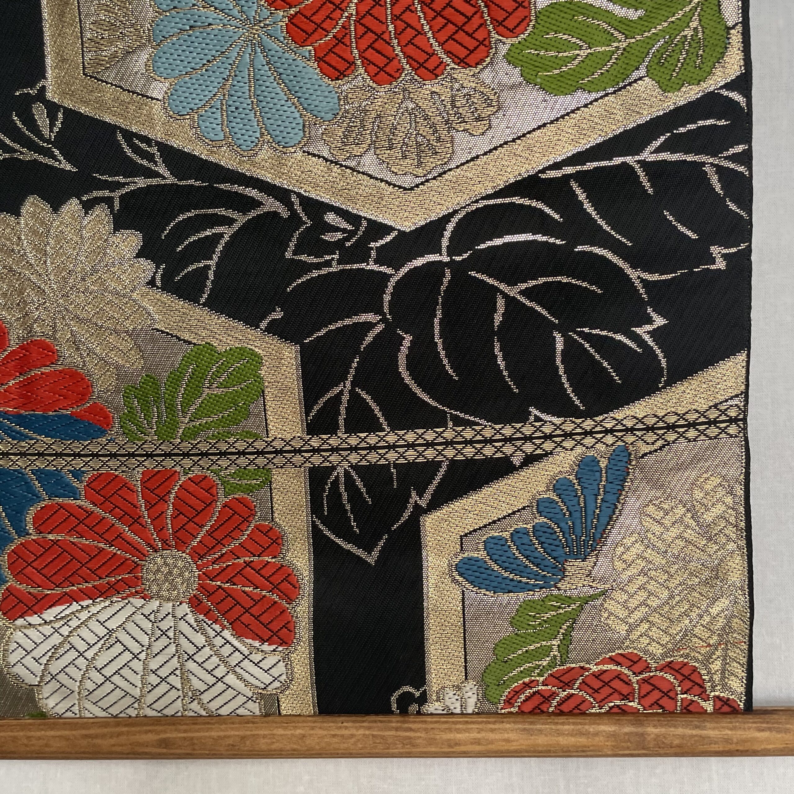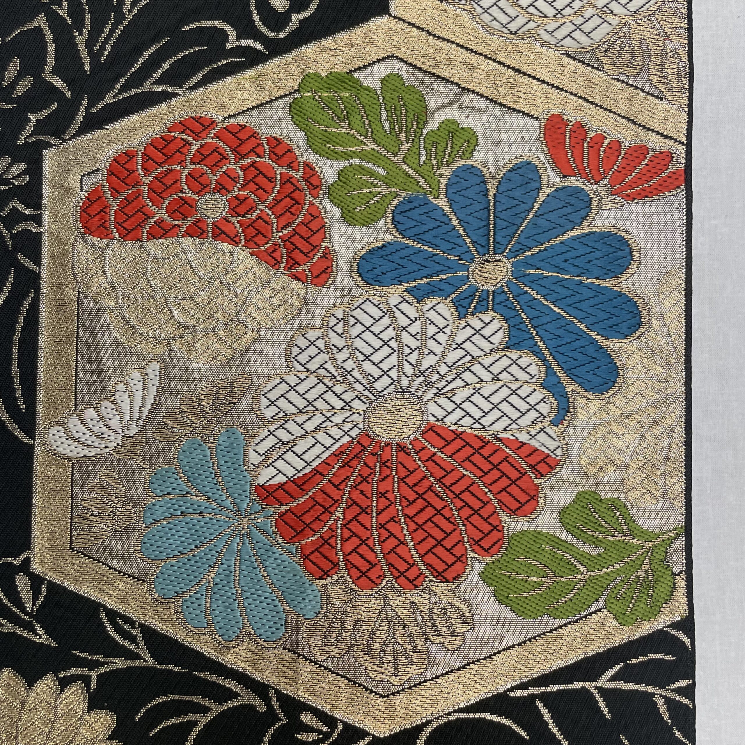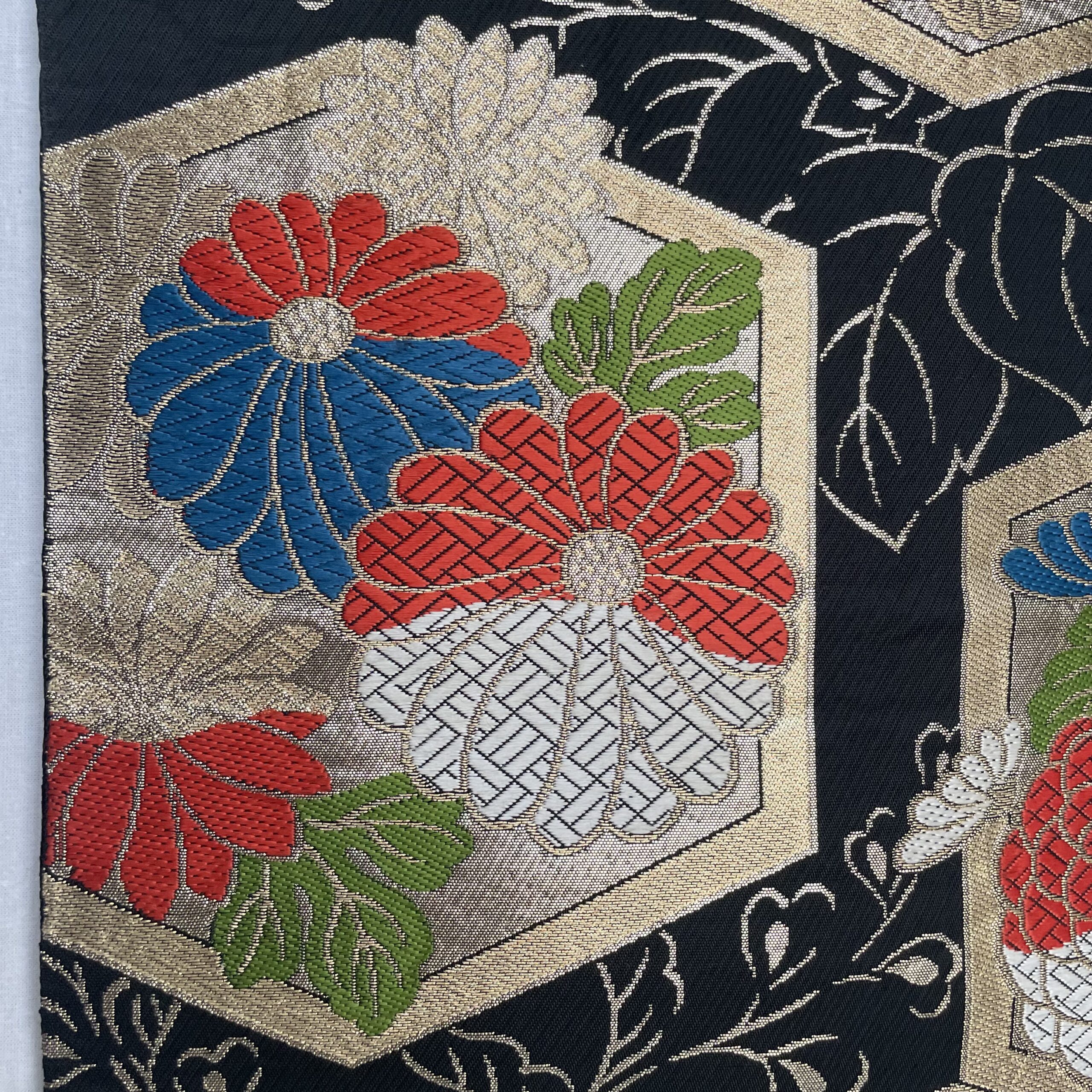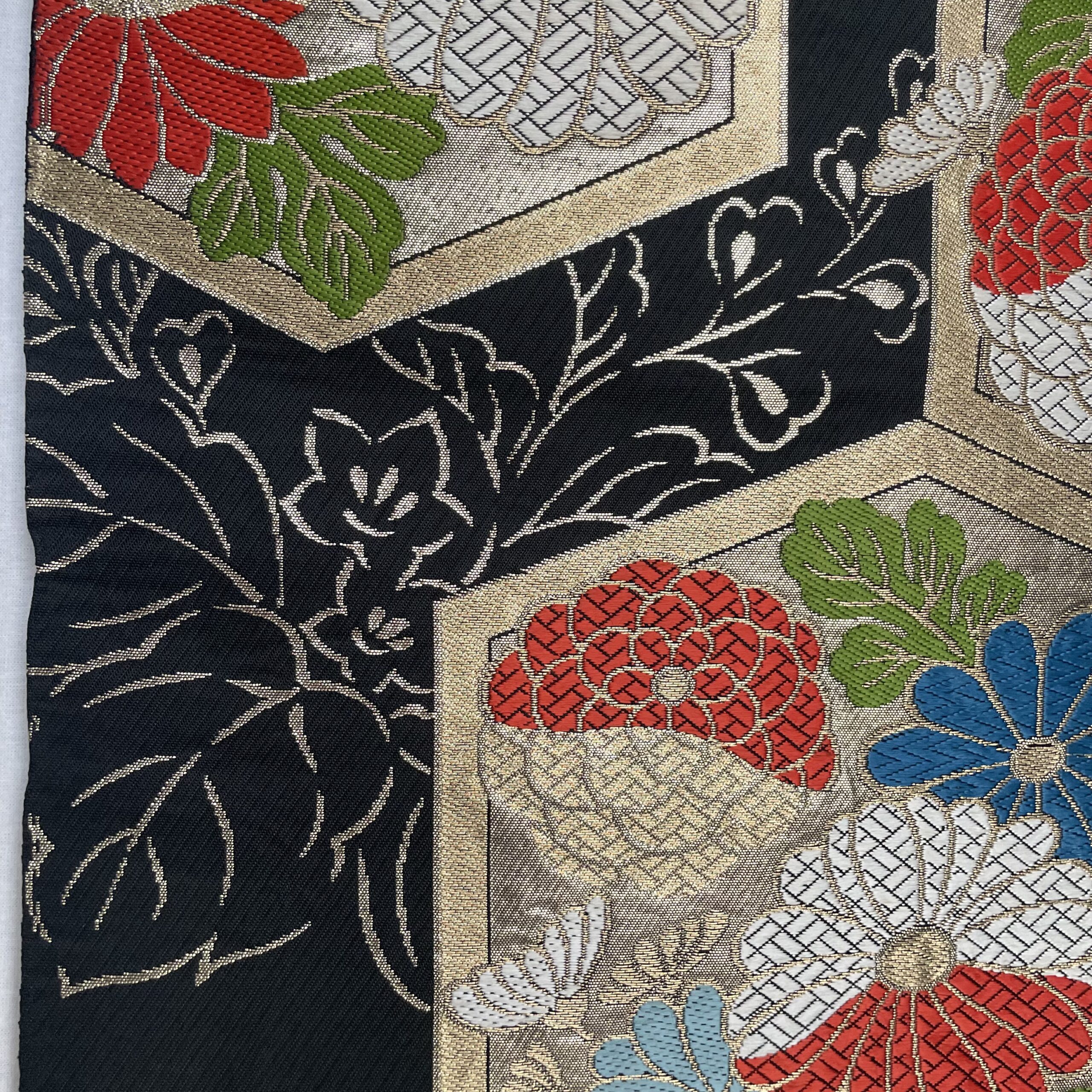 This is a one-of-a-kind item made from vintage kimono ( or obi ) fabric. Enjoy the unique variations in color and shine that change depending on the angle of light. Please handle with care, as areas with embroidery, gold thread, and silver thread may be delicate and prone to wear. Depending on the fabric, there may be slight looseness in the threads or minor stains. To preserve the fabric’s texture and color for as long as possible, avoid direct sunlight. This item is sensitive to water, so please use it indoors only.